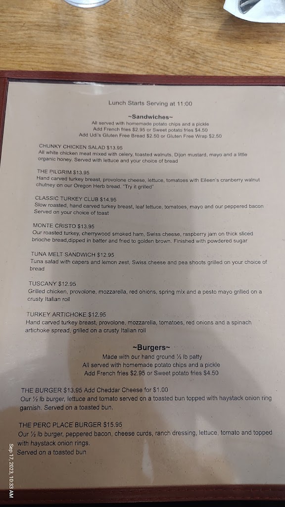 If you enjoyed Perc Place before, you’ll like it just as much now! New owners have maintained and even enhanced the food at this wonderful place. Veggies in my veggie hash were brightly colored and fresh. They appeared to be prepared just for my dish.