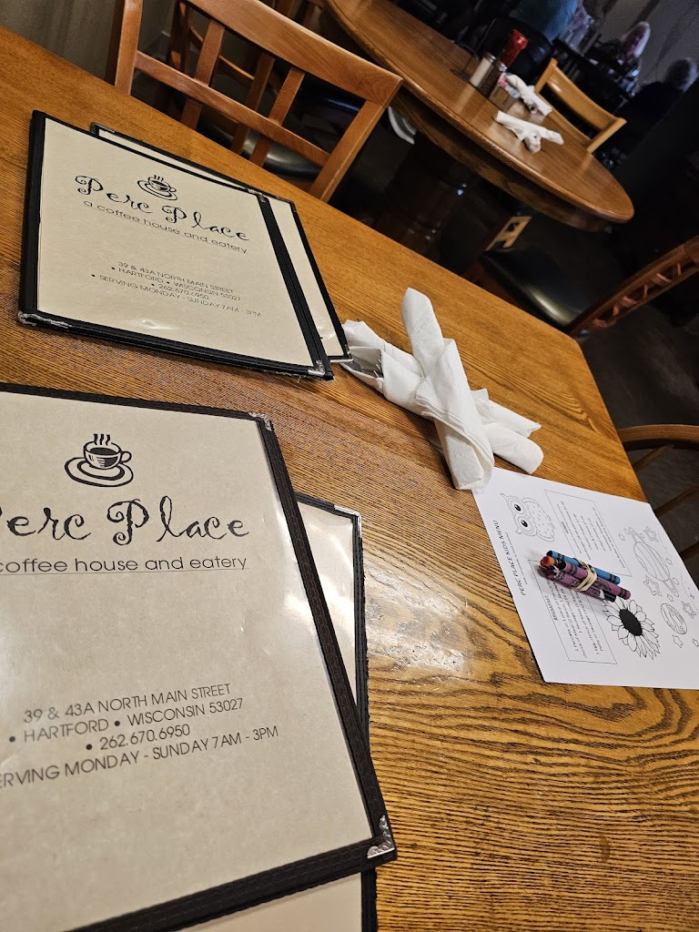 Me and my kiddos loved to go to perc place when we lived in Wisconsin before moving away Sarah was always our waitress and she was always very friendly she always had our order down pat when we came in just wed time to time make a few changes to our food and the drinks were always different over than that we miss perc place and Sarah thanks for the great food and good times when we did come in