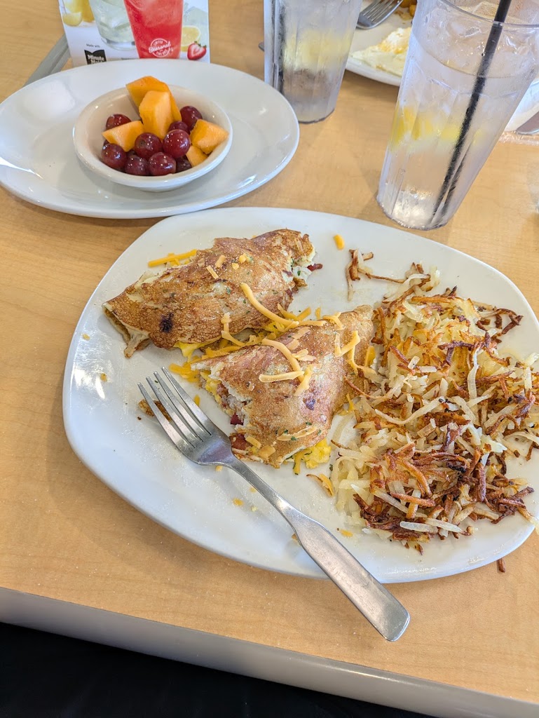 We had a great waitress! Food was good too. We all had breakfast foods. Hash browns and pancakes were wonderful! We all had a piece of pie too. Yum!