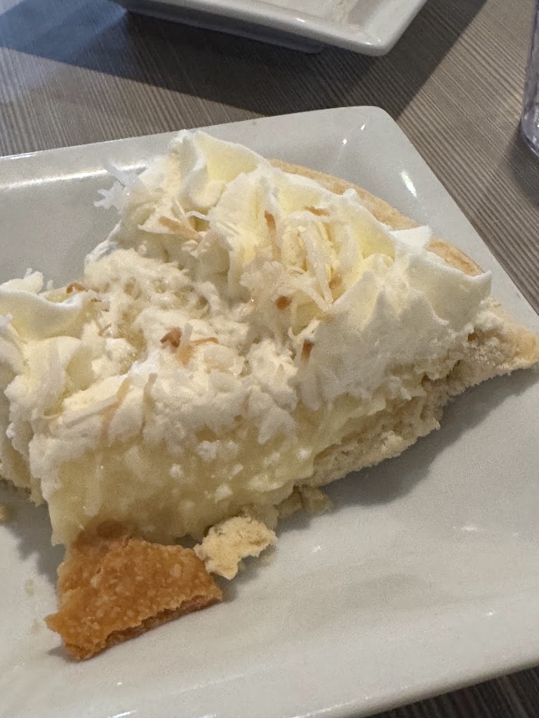 I ordered a coconut creme pie to gowhich is fine with my allergies. I got back to the hotel and found it was banana creme with nuts. Can't eat nuts. They wasted my time and money.