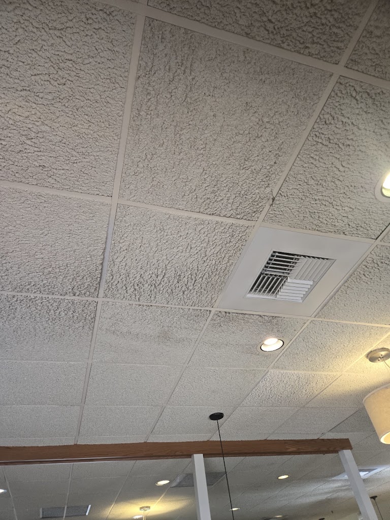 The ceiling is covered in dust. White, I understand that economic times are tough and budgets are tight; Perkins is serving food in a public environment and charging plenty. Our bill for 2 people to eat chicken fried steak and eggs was over 50.00. That ought to be enough to pat someone to run a shop vac . Completely dissatisfied
