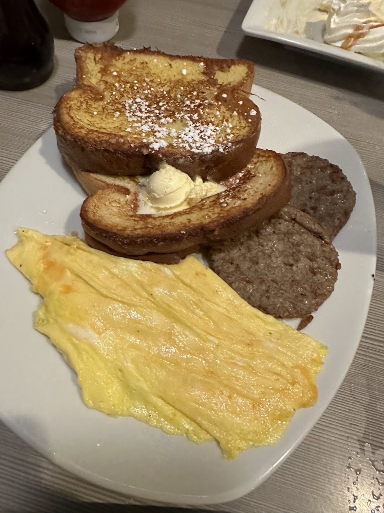 French toast was excellent today, and a great helping of hash browns which I appreciate.