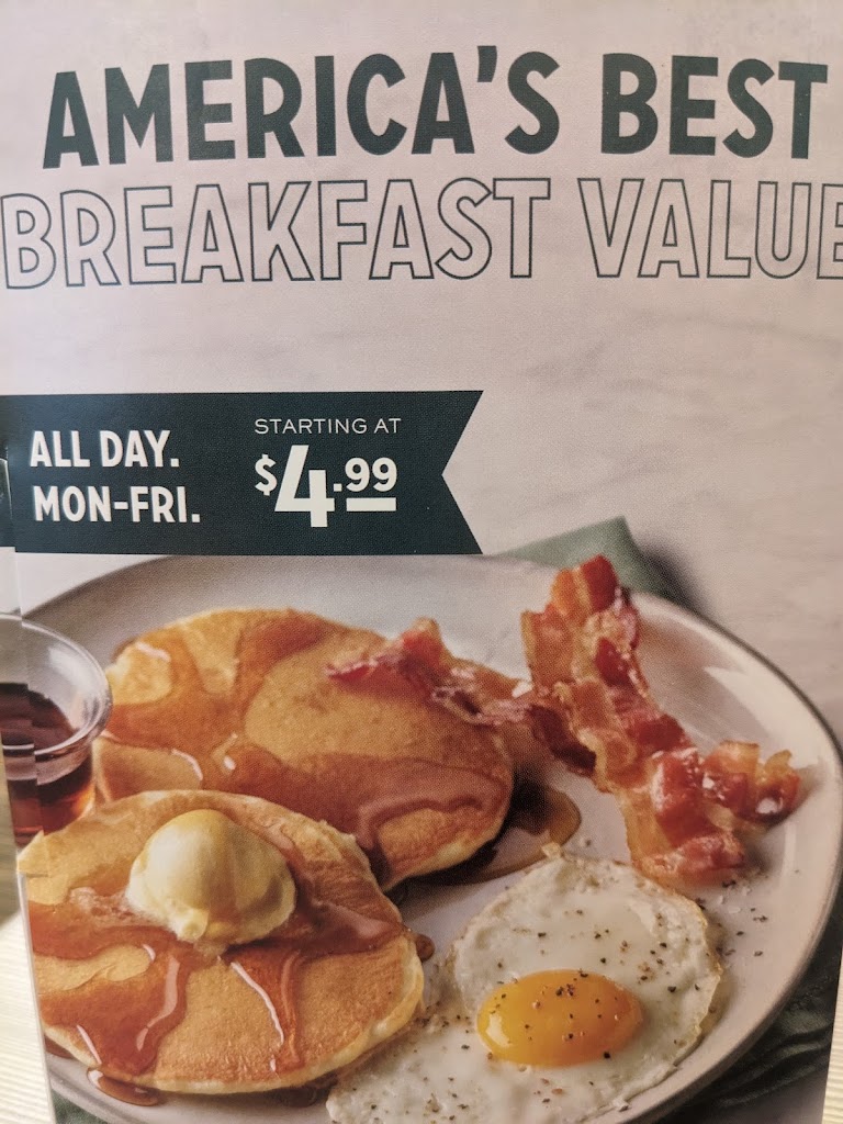 Stopped in to have a relaxing breakfast, and the manager JUST HAD TO put up a window sign in the booth next to me. Constant scraping and irritating to the MAX.