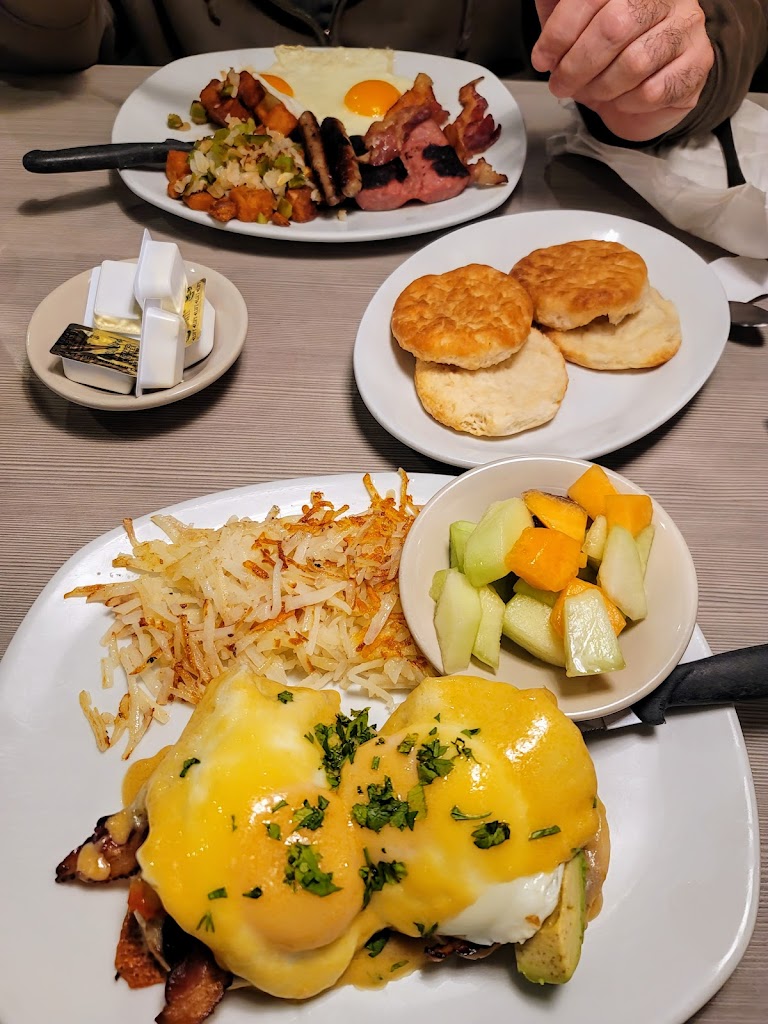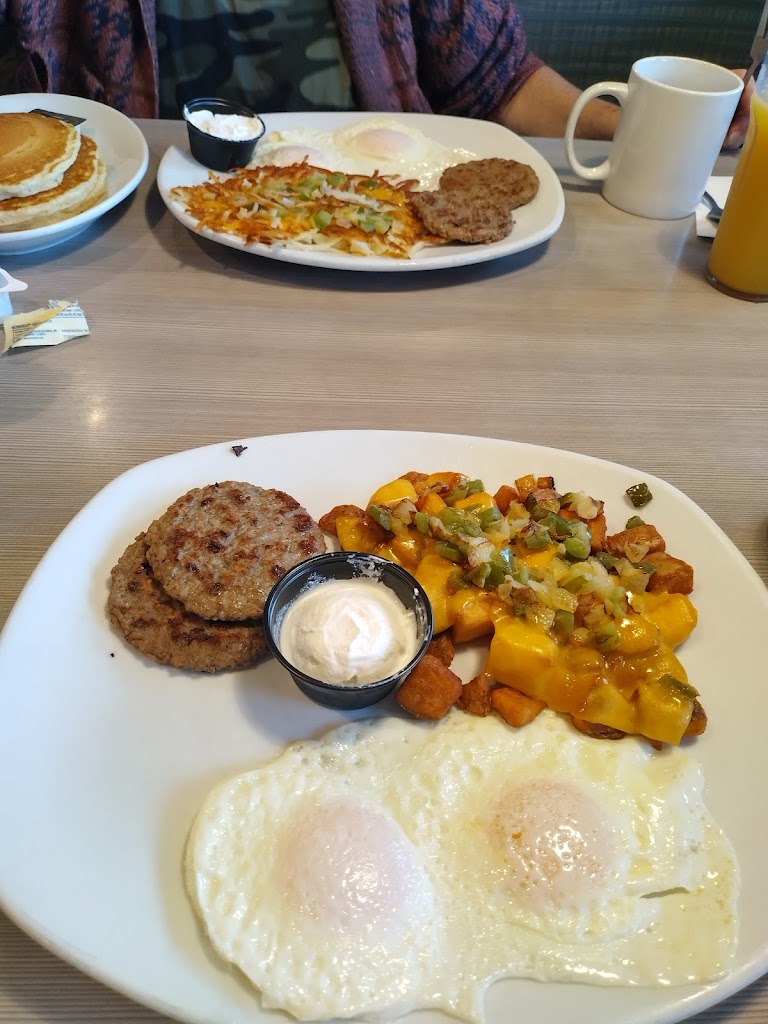 The food was great and we were asked many times by the servers if we need anything and gave us everything we could have asked for. Great place to go make sure you go before there is a rush unless you don’t mind the wait. Food was amazing they even had franks red hot sauce for my omelet. Had a bunch of EAA decorations as well which was a fun addition! Didn’t have any bakery items but they did look great, they have an awesome deal for a slice of pie and a cup of coffee which I might have to do the next time I go…