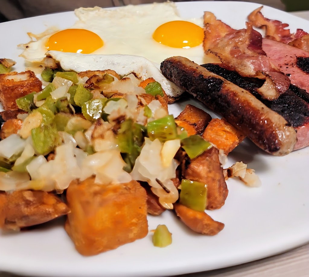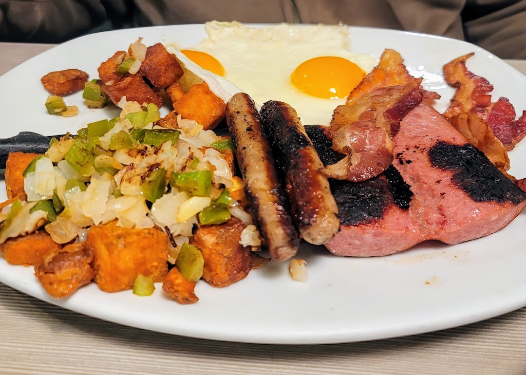 varies by server.7/7. I will not order the steak and eggs again. I have a serious medical condition . The steak tasted like it was dipped in black pepper 🌶. I throw the steak away. It's not worth the pain I would have had.