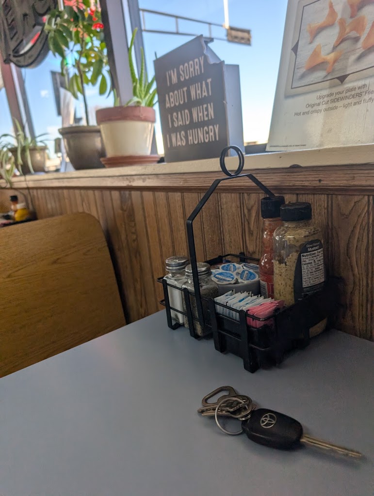 This was a great homey feel diner! Got in just before it rained and were greeted politely and had friendly service the whole time through. Our food was delicious and filling, and our waitress (though she was busy!) kept us topped up and happy. We’re visiting from Alberta Canada and were happy to stop in here!