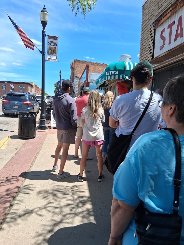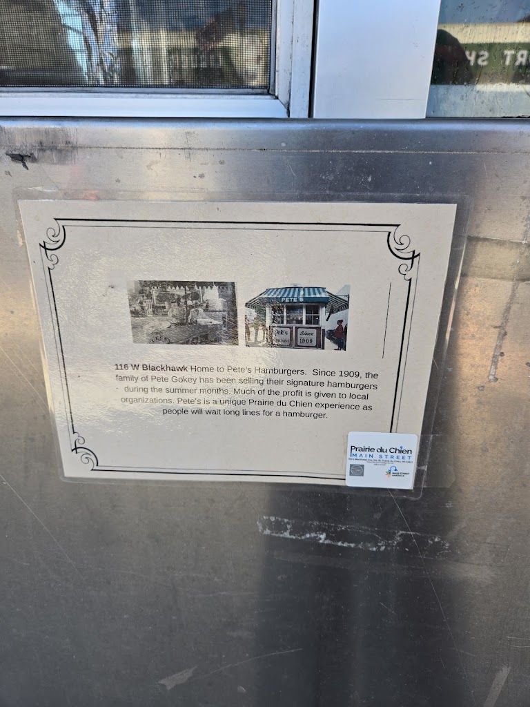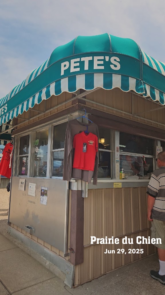 Let's keep this as "real" as I can. Told some friends we are going to Prairie Du Chien for the weekend: I was told I had to visit Stark's and Pete's!! Pete's was so overhyped that I was expecting this "once in a lifetime" burger that it would be life changing! (it wasn't) that said it was very good BUT not worth the hour and 10 mins standing in line. My advice, if the line is short go get 1 or 2 burgers (don't ask for cheese) if the lines are long come back later.
