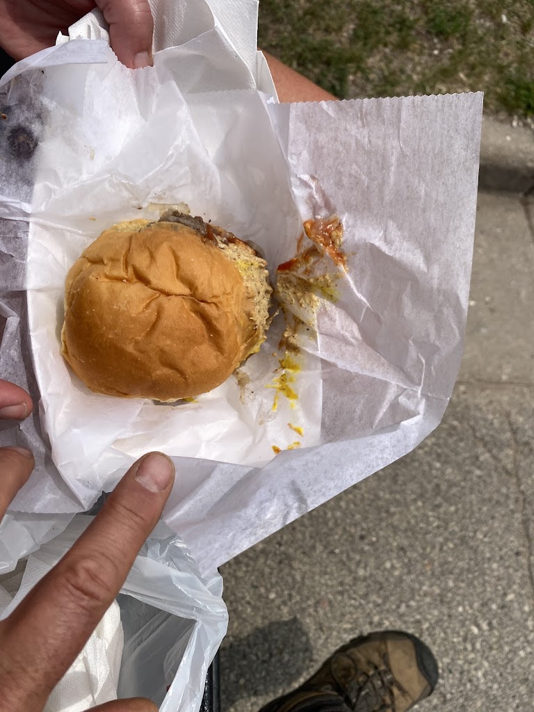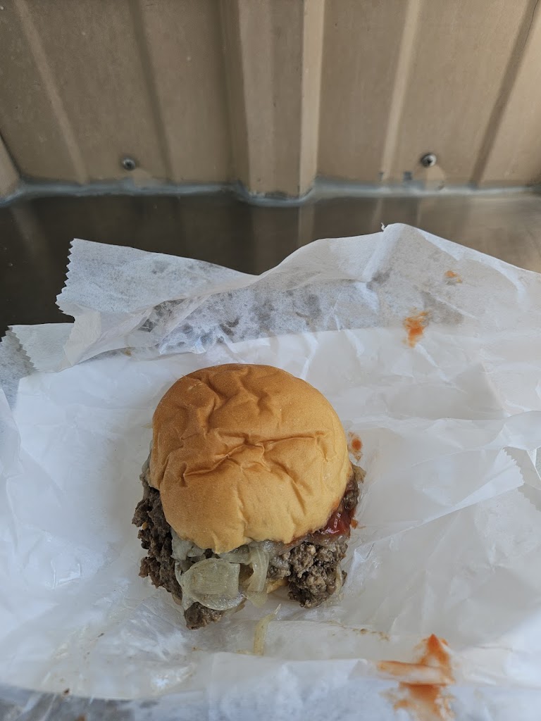 We were eating boiled burgers. They tasted exactly as they looked. Not bad, just kinda ok. Not really seasoned with anything, just kinda boiled. The bun was actually very good. Soft and fresh, but also a bit soggy on the bottom with boiled hamburger water soaked in. I ended up wishing I’d asked for extra ketchup and mustard on mine to give it some more flavor. It vaguely reminded me of a White Castle or Krystal burger but thicker. Probably/usually amazingly good when you are drunk, but not so amazing sober.