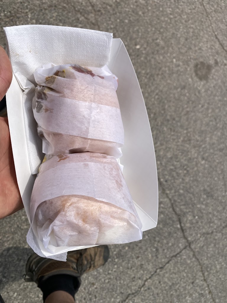 When we arrived we were stoked! Sure enough, there was a long line on both sides of the stand and that’s always a good sign for someone trying a new place! After about a 15 minute wait with no movement, the line suddenly started moving rapidly. (They cook all the burgers in one giant batch at a time and are then able to serve them quickly until they are gone. If you don’t get one, presumably you have to wait for the next big batch to be ready. No big deal, we got ours on the 1st batch we waited for.)