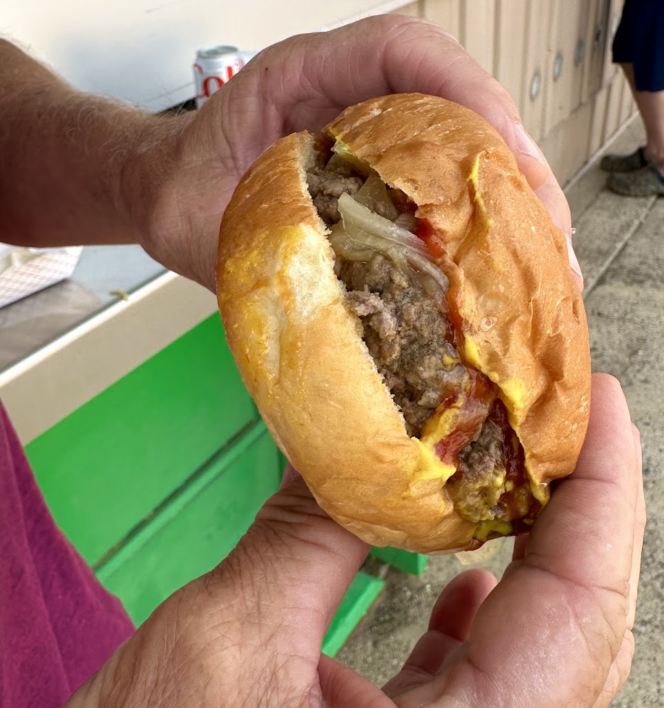 A tourist favorite. Mainly because it's seasonal. Burgers are small, not seasoned, cooked in onion water. Enjpy.