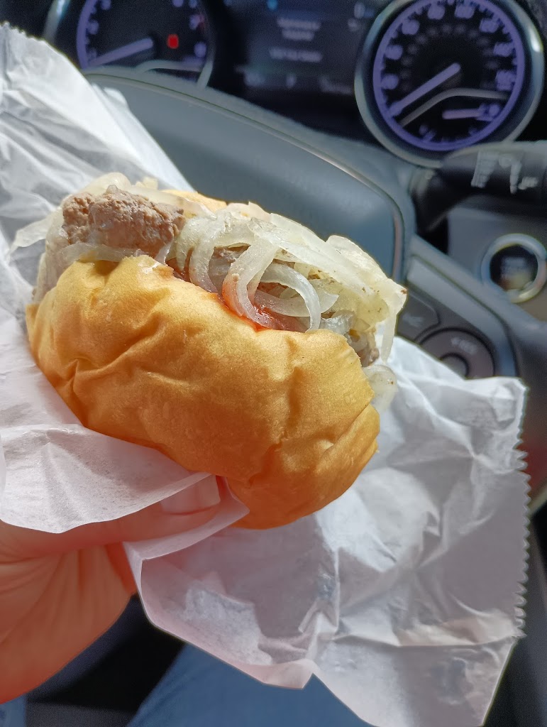 Been by several times but never stopped. Didn't have much of a line so we decided to. Burgers and onions were boiled. They tasted good.