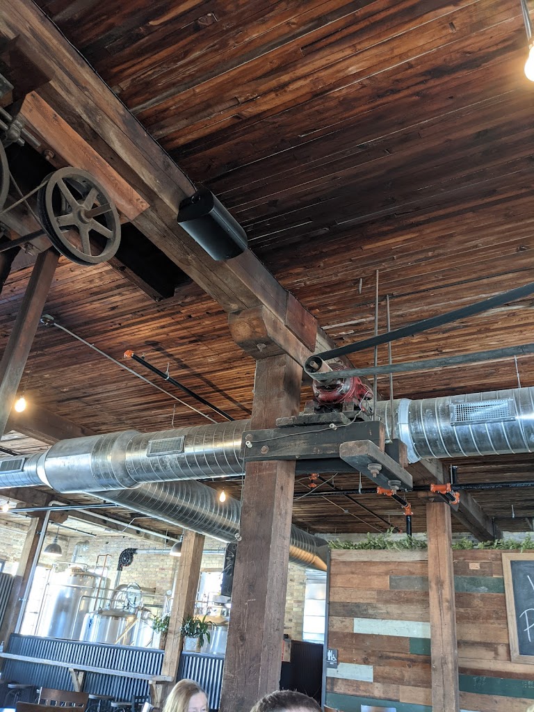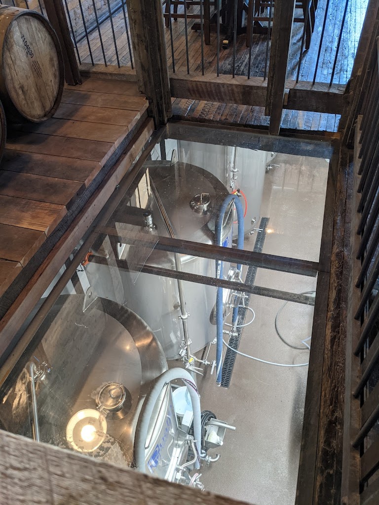 This appears to be an old factory and it’s cool inside. The wooden floor must have 1000’s of stories and the exposed brick and electrical motors are awesome. You’ll be able to see the brewing vessels both upstairs and thru an in floor window exposing the basement.