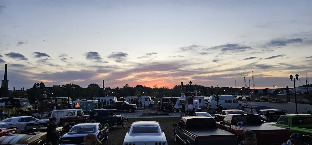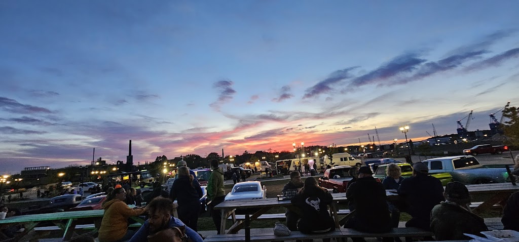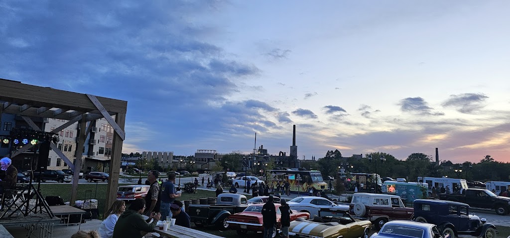 There is a raised band stand in side and spacious outdoor patio with a nice view of the river.
