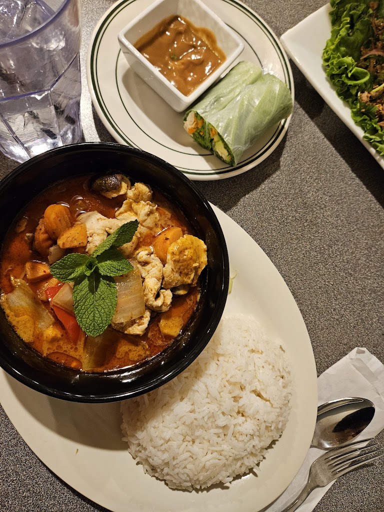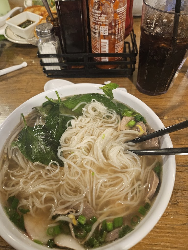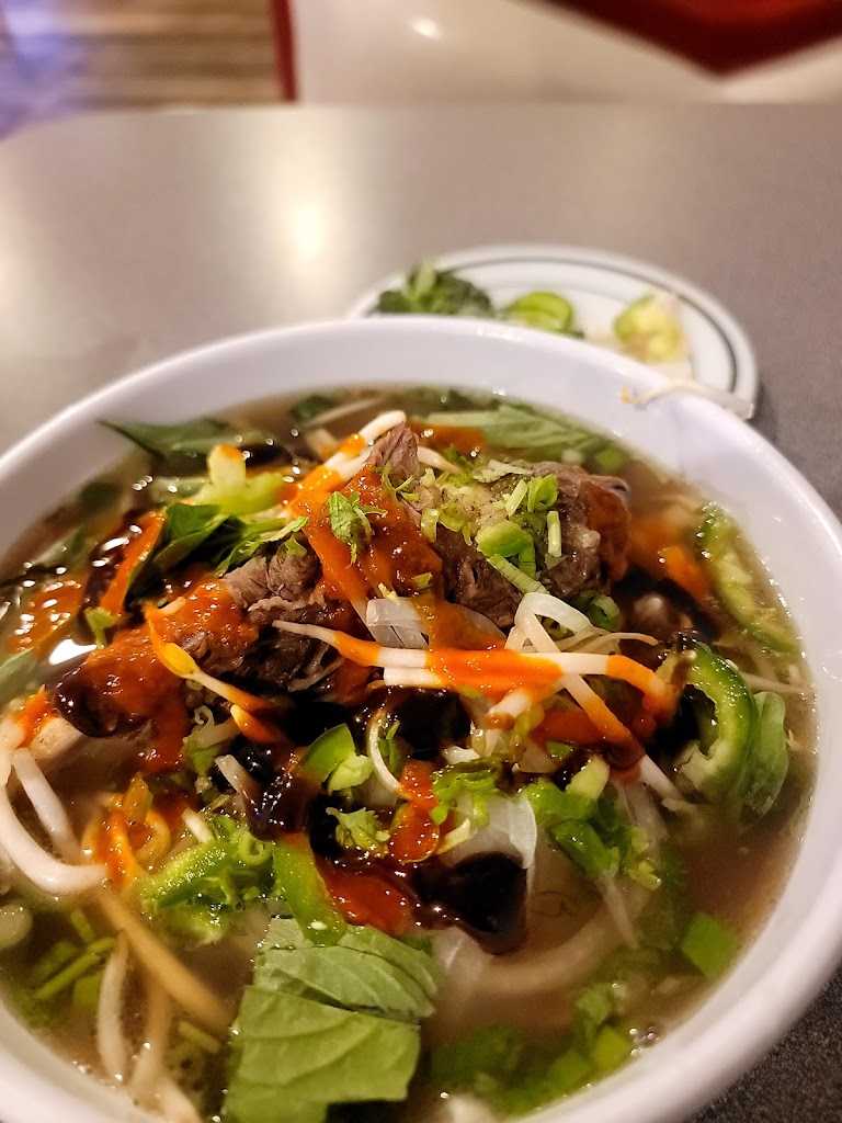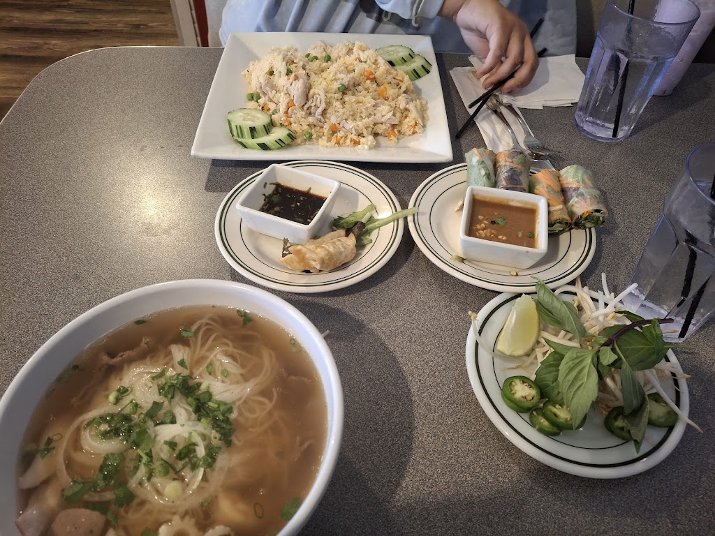 Food is pretty good. Could tell that we arrived right after a rush. Got our appetizers on time… then things started to slow down. Didn’t get any water to wash down the appetizers. Then we got our food and asked for water. No utensils were given at this point. I got pho and my spouse got curry so we thought for sure we’d get them soon! Nope, it was missed so we asked the young girl to grab us some. We paid, we got a foam box for the curry… we just decided to leave it lol. The servers are nice, just didn’t seem attentive tonight.