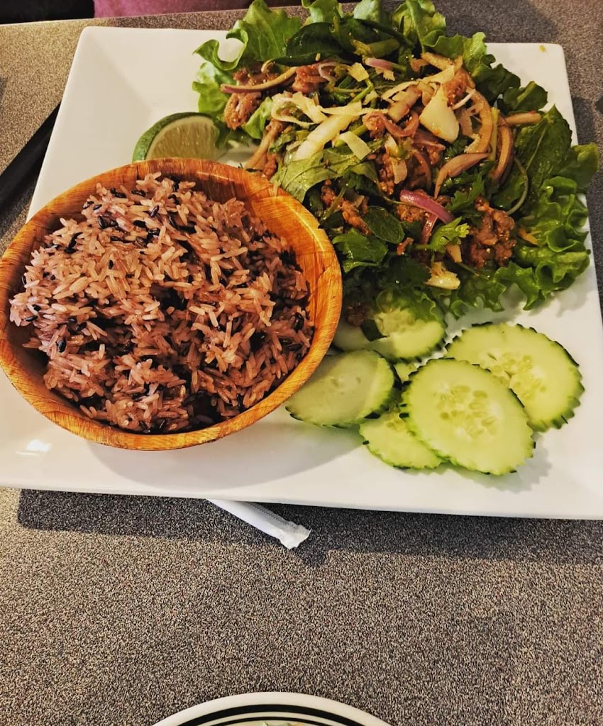 The laab was dry and had no real seasoning or garnishes. It was missing key ingredients like shallots.