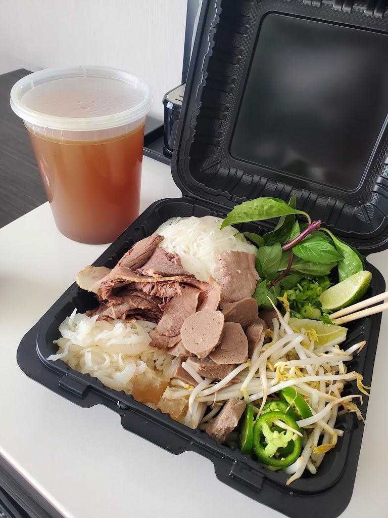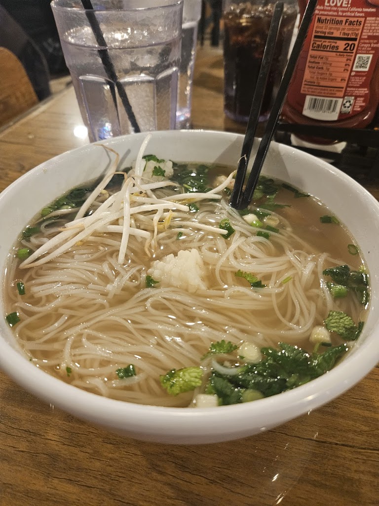 The pho is excellent! Chef's kiss 💋. It has a nice look to it, and they seem to be open on the weekends very late because they also have a bar. Looks like a decent date night and drinks spot.