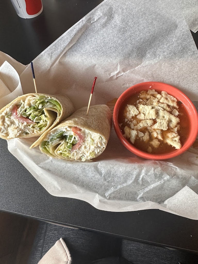 Had the chicken salad wrap and vegetable soup. Also tried the clam chowder, not a fan of anything I had here. It wasn’t terrible but it wasn’t anything to rave about. Everything was very bland. Service was very friendly, this place has a lot of potential to be great but it’s just not there yet.