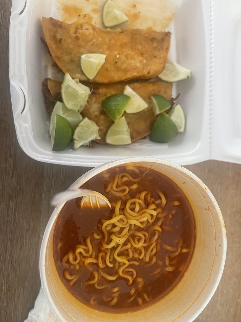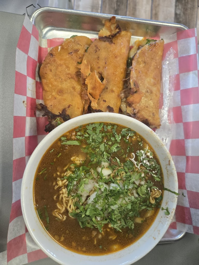 Place is clean. Definitely less homey than the other location on 3 mile.sat down, meal doesn't come with chips and salsa. The consomme in my birria ramen was a lot more watery. The tacos weren't full. Sour cream, salsa, everything costs, compared to other location. Wish the experience was consistent, but I will be choosing the three mile location every time now.