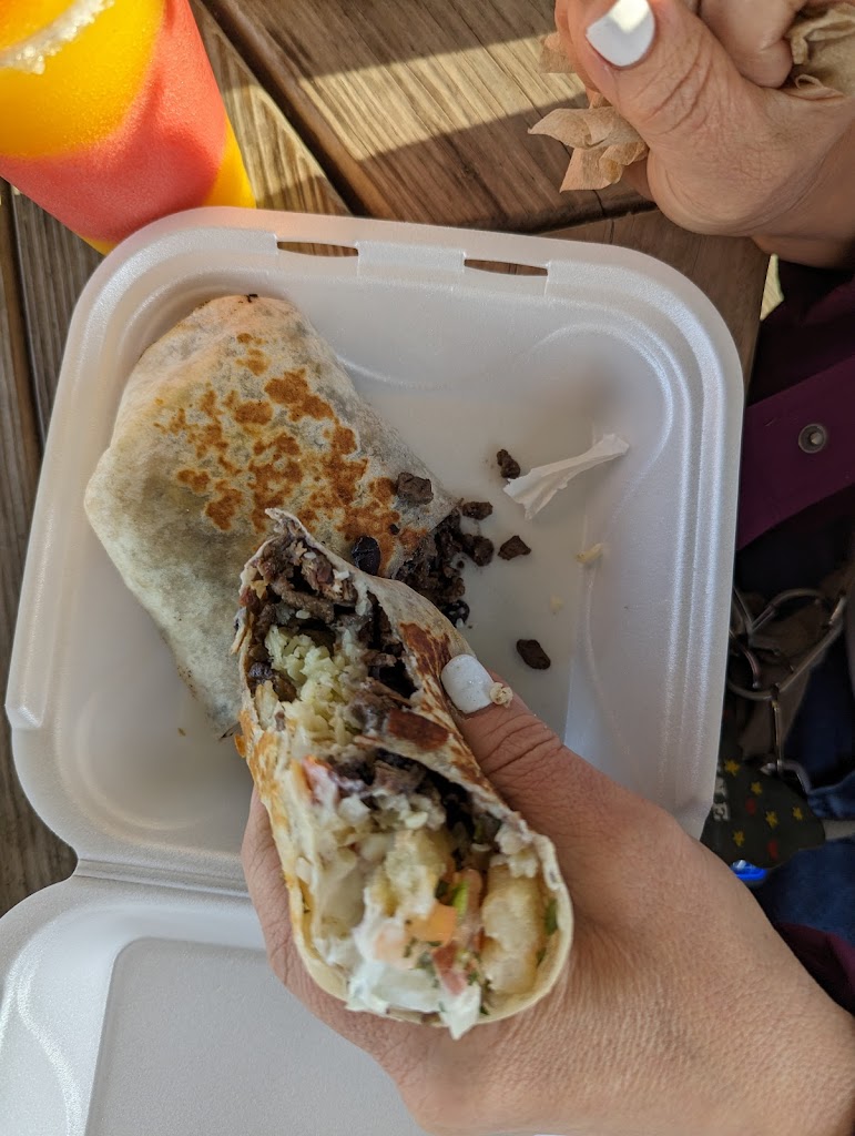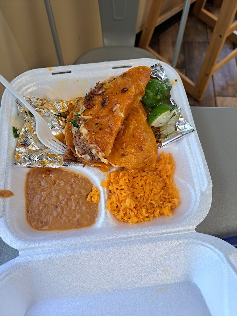 The food is pretty good to be honest however the the prices are fair for the most part but that's not the reason this place has 3 stars from me the reason is that 1st of all the people who work there are kind of rude I gave them my name and they gave me a strange and mean look cuz I'm a Trans woman and the 2nd reason is the damn portions are unbelievable I ordered a breakfast borito from there and yes it was good but It was so big I couldn't even cut it let alone fit it in my mouth