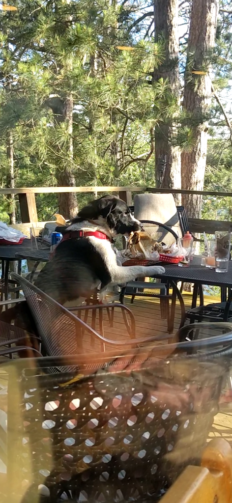 Cabin 4 is located uphill, and to get to the lake, it's down a moderately steep road which doubles as the boat launch or down steep stairs in front of one of the other cabins. Our deck was a little worse for wear, while the cabin was cleaned and nice, the desk was not, all the outdoor area was covered in dirt, sticks, acorns, leaves, etc, it was obvious it was not part of the routine cabin cleaning, the outdoor chairs had goose droppings on them, the grill was missing a side table and a wheel. Not a huge deal, but I recommend bringing camping chairs or towels for the deck chairs.