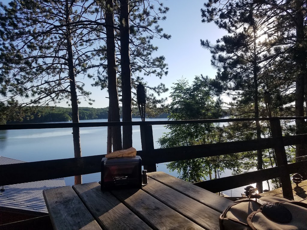 Cabins were very nice, the kitchen had more amenities than advertised on the website. The lake was beautiful and clear. The docks are not assigned to cabins, but there is plenty of space to tie up your boat. We recommend having tube style boat bumpers. A couple of the docks do have power outlets. They had a lovely outdoor bar area with barrel tables and outdoor lights. It was lovely. The bar also has a deck patio overlooking the lake and the food was very good. In Iron River, they have a full grocery store, a meat store and the General Dollar was basically a mini Walmart, we definitely didn't need to bring up as much food as we did. They also provide a self-serve ice station for your coolers, which was an awesome added bonus.