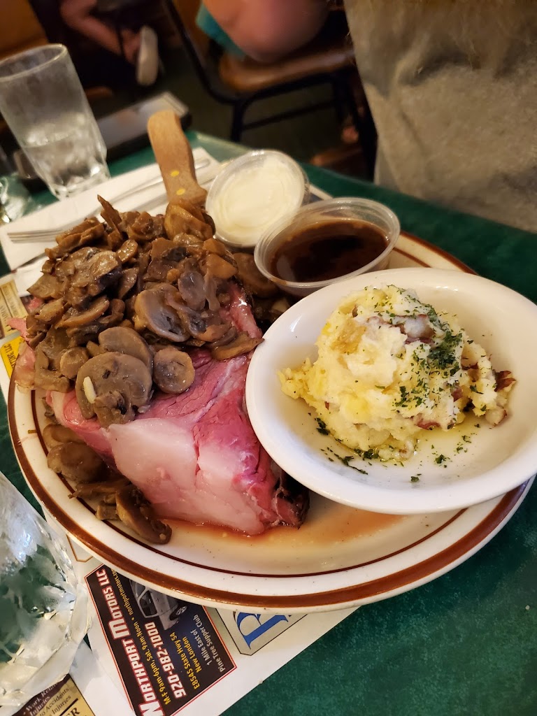Prime rib this evening that we sooo looked forward to had the most fat on it we've ever had, and the cut was tough. Definitely not like it used to be. Potato was over cooked as well. Sad. Used to love this place.