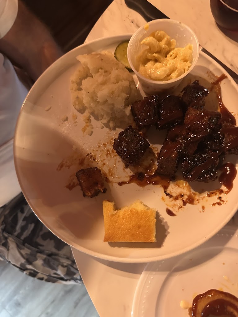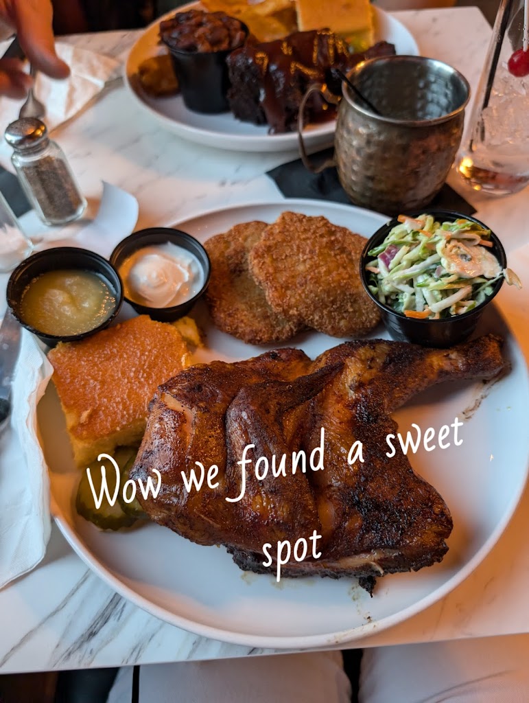 The pulled pork was fabulous and the brisket was "melt in your mouth" tender. We loved all of the sides that we ordered. Excellent service. Definitely recommend the signature drinks.