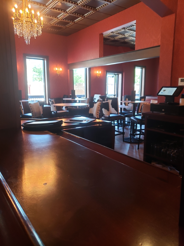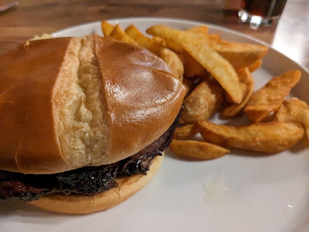 Absolutely wonderful experience. Friendly fast service. The place is amazing looking with a historic feel. Cow Hyde chairs are a nice touch. The custom made cocktails were very tasty and brought a big range of flavor sensations. The sandwich was incredible. Brisk was sliced thick and fall apart tender. The pickles were very nice a mix of sweet and sour. The potato wedges we done perfect, nice crispy exterior and was soft interior. I can't wait for my next visit I really want to try the 1/2 pound smokehouse burger. Worth the drive and time. This place is a hidden gem. Update tried the smokehouse burger and it was delicious. Highly recommend it.