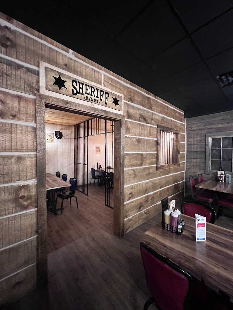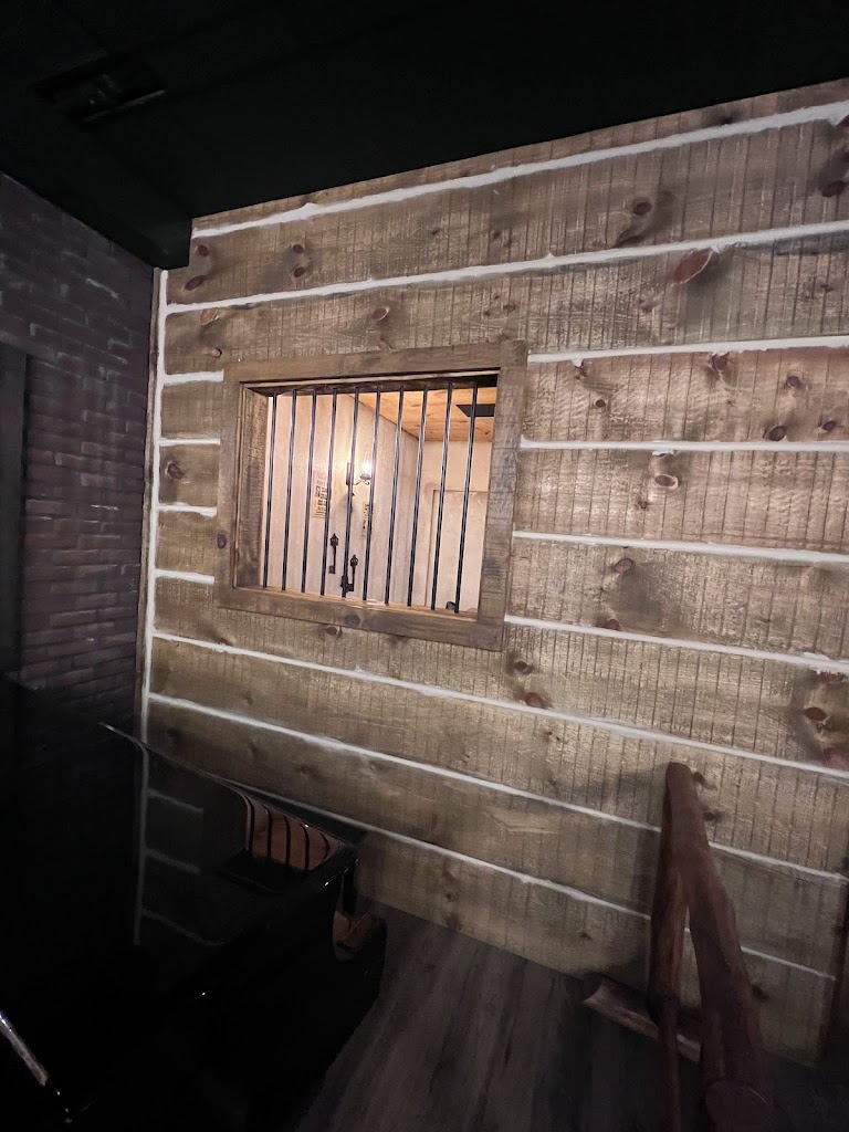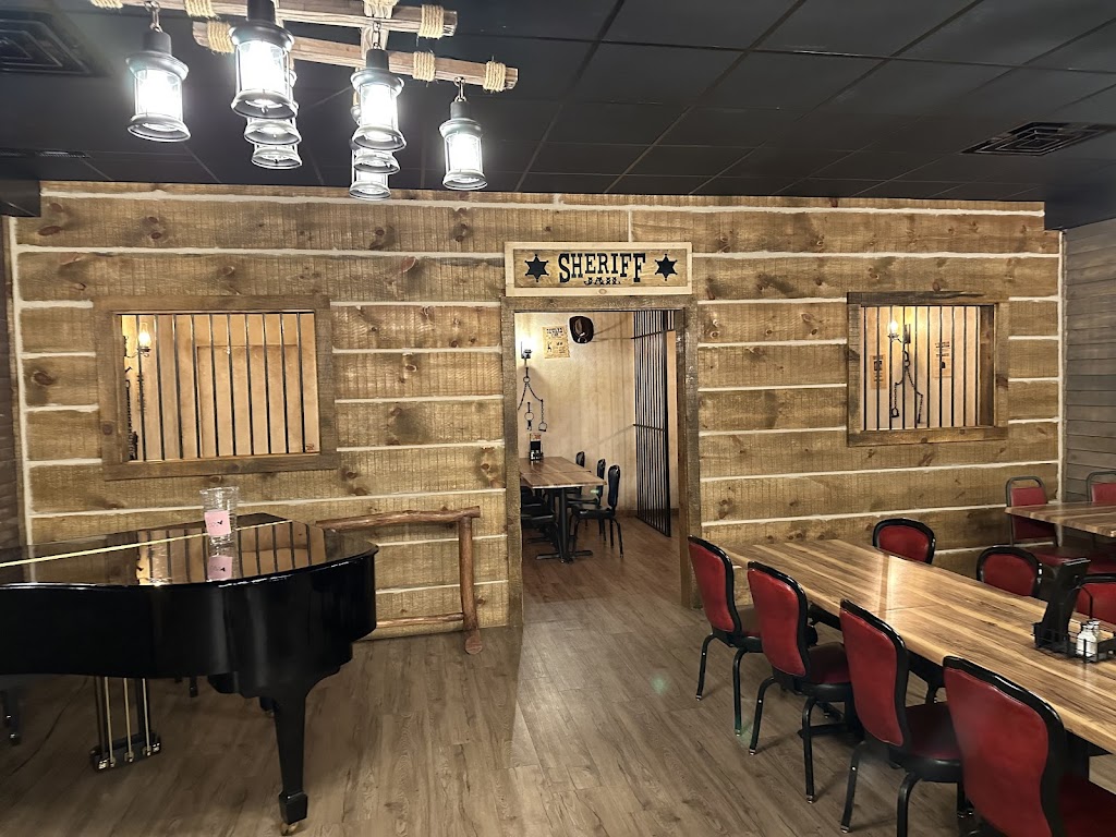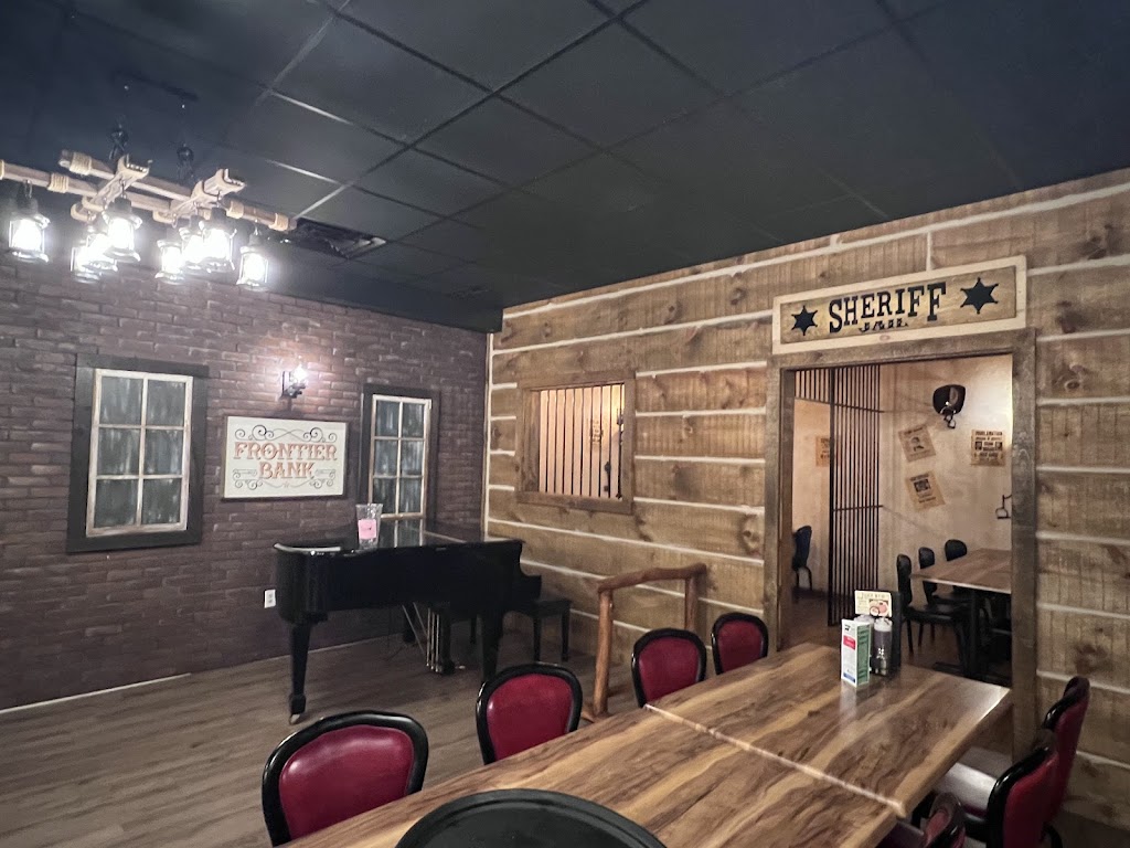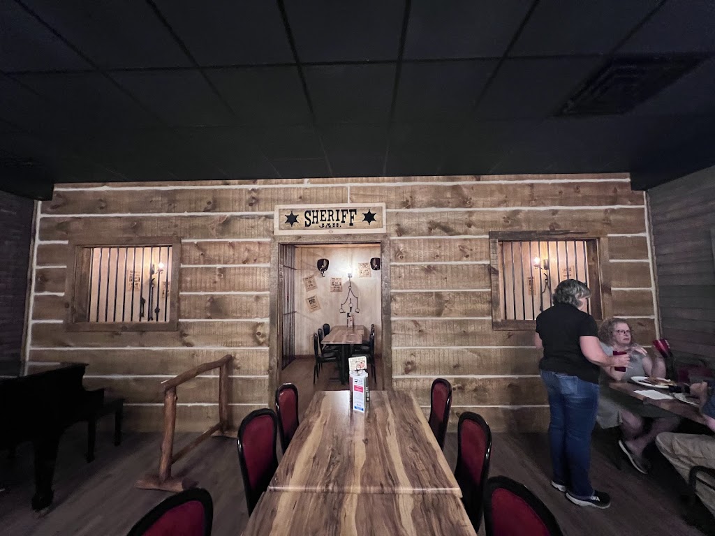 Place: you expect Matt Dillon to walk in at the last second telling a bad guy to hold it, and hand over that gun. They have an event room like a jail. The back bar that any one would love to see a guy named Sam serving whiskey in front of it.