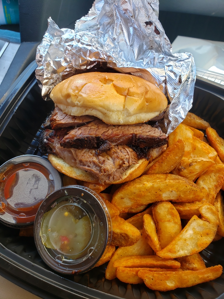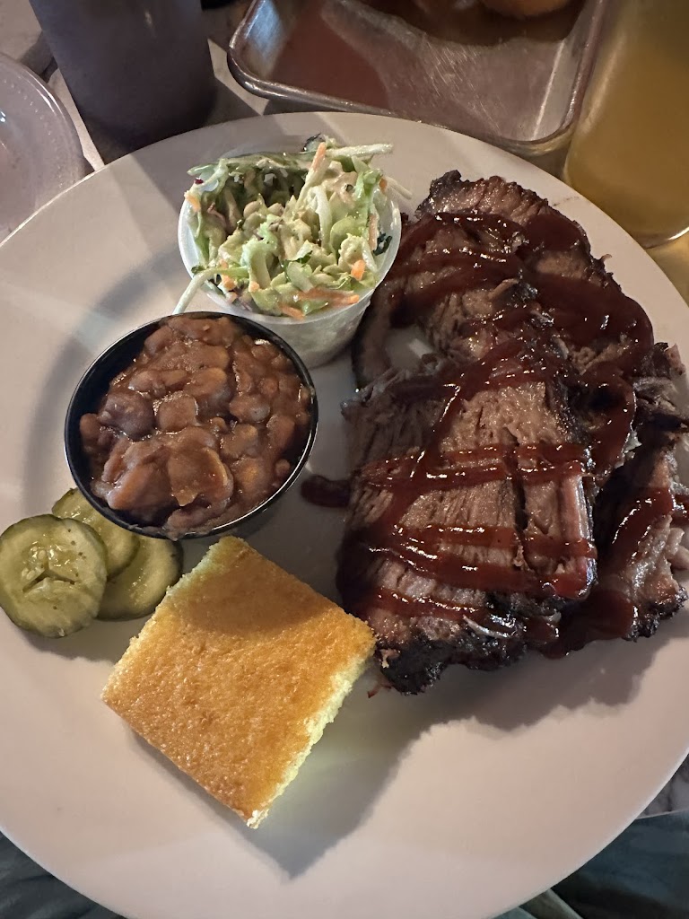 Food: The Brisket plate- Slaw tasted like the grass in the yard. The Cowboy beans were excellent. Brisket was more than tender, and delish. Melt in mouth served with a little sauce on it. The brisket was #3 of the best I’ve ever had.