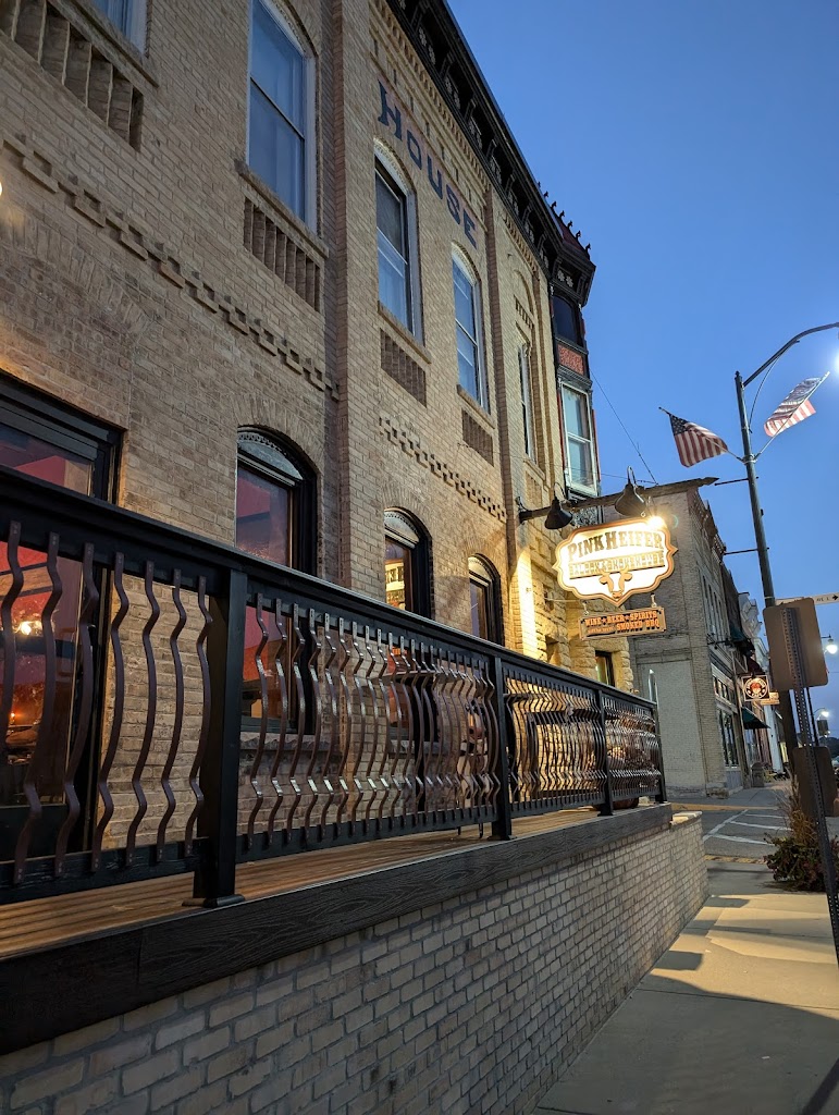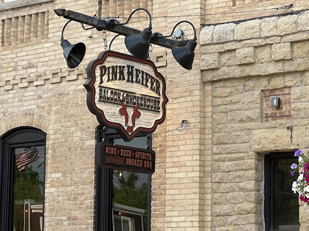 Pink Heifer Saloon & Smokehouse- 149 N. Main Monticello Wisconsin- This is a Saloon Decor and atmosphere. I was skeptical when I was told that it was amazing, I was surprised when it was. So, a Dodge city saloon with Amber, that I call Kitty. She was very much putting up with my jokes and feeding it back.