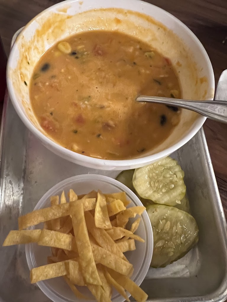 Ben had the brisket egg rolls. He liked them. The chicken tortilla soup was really good. We both had brisket and we were happy. It was tender and had great flavor. The Mac & Cheese wasn’t our favorite.