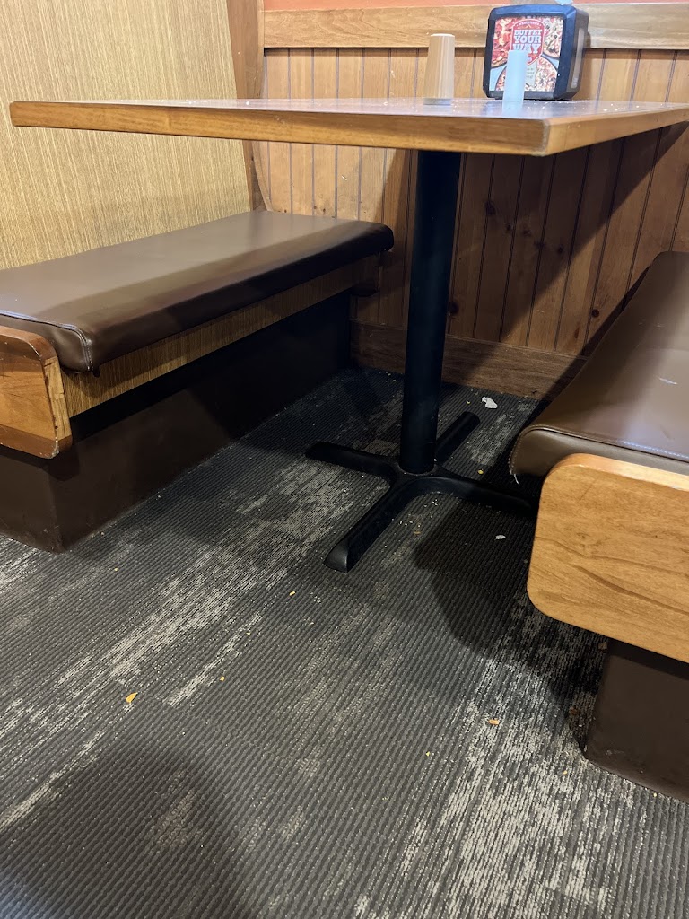 Floors in restrooms were sticky. Dining room was not clean. Pizza was really lacking toppings and was not fresh