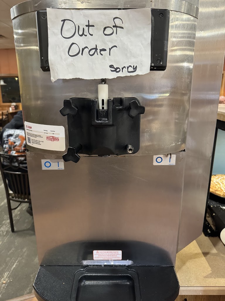 The pizza was pretty good but no paper towels and forks the ice cream tasted like water and no food at all on the actual buffet barely pizza at PIZZA ranch