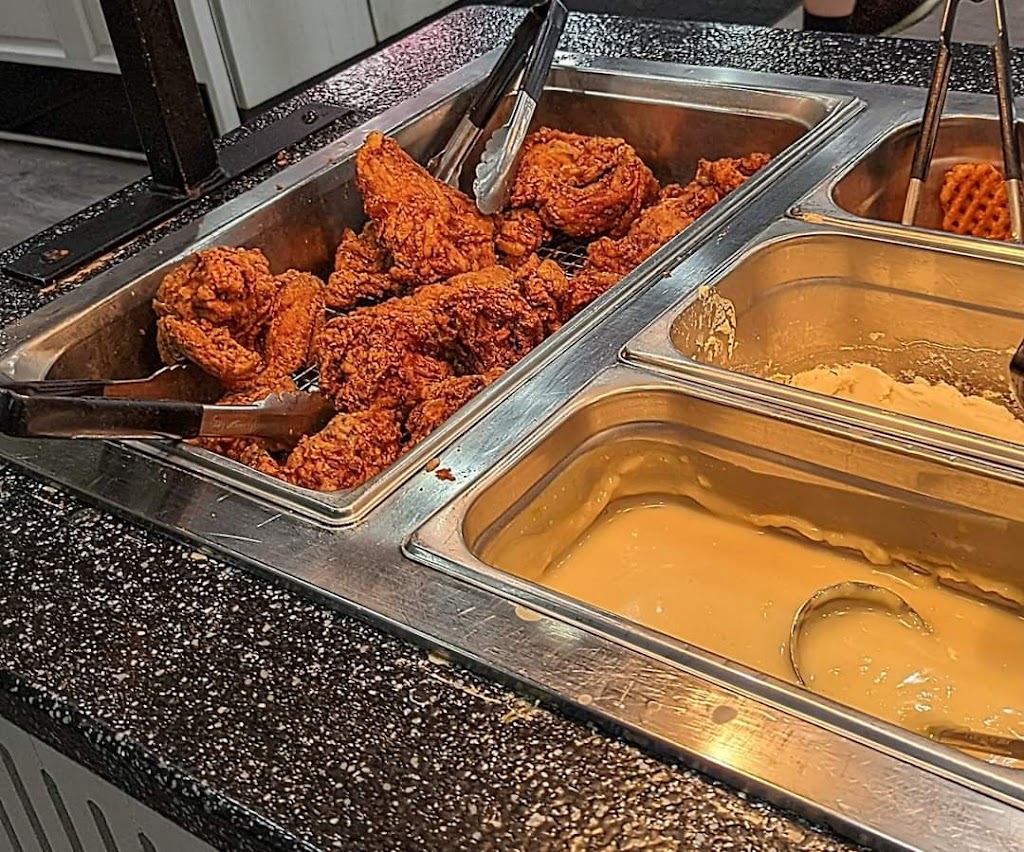 Employees were friendly but largely missing in action. The chicken was surprisingly hot and tasty. Pizzas were tasty but cold. A patron asked when fresh ones would be coming. It never happened. The ice cream machine made a terribly loud sound when I attempted to use it. One of the employees came running over and shut it off, promising to get me ice cream from the kitchen. I waited for her by the machine for 5 minutes and then gave up. She never reappeared so my husband and I finally just left.