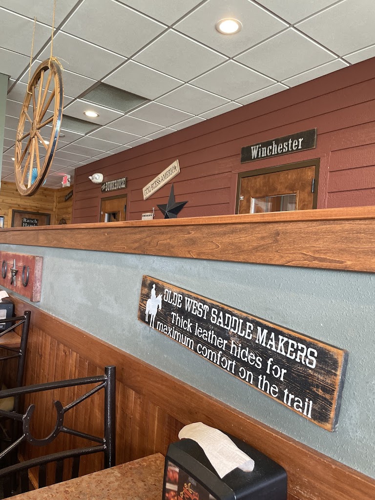 The decor was awesome. Everything represented being at a ranch. It was super cool they had a sign that said Oshkosh saddle shop, est 2015. Hmmm wonder if that was when they opened.