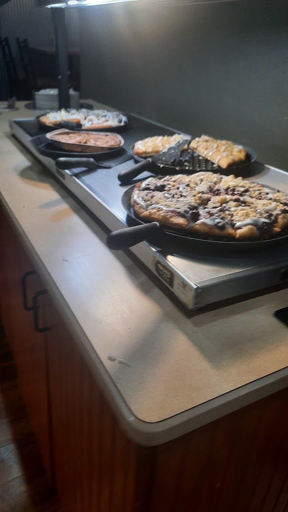 I enjoy Pizza Ranch because you can order whichever pizza you desire and they'll bring you as many slices as you want, with the crust style you want, and any remaining pizza will be put on the buffet. You get to try a variety of pizzas for one price, which is very reasonable. I believe it was around $14/adult. They have great choices on their salad bar. There are so many options to choose from, or choose them all! The hot bar has broasted chicken, homemade chips, mashed taters, stuffing, gravy, and a hot veggie. They offered fried fish and chicken noodle soup, which was as hot as the surface of the sun. The dessert bar had four different dessert pizzas and a chocolate chip cookie pizza, which was warm, a little soft, with crispy edges. Delicious! The staff were on top of picking up dirty plates, and the restaurant was clean. The ice cream machine was out of order on our visit. All you can eat for a decent price.