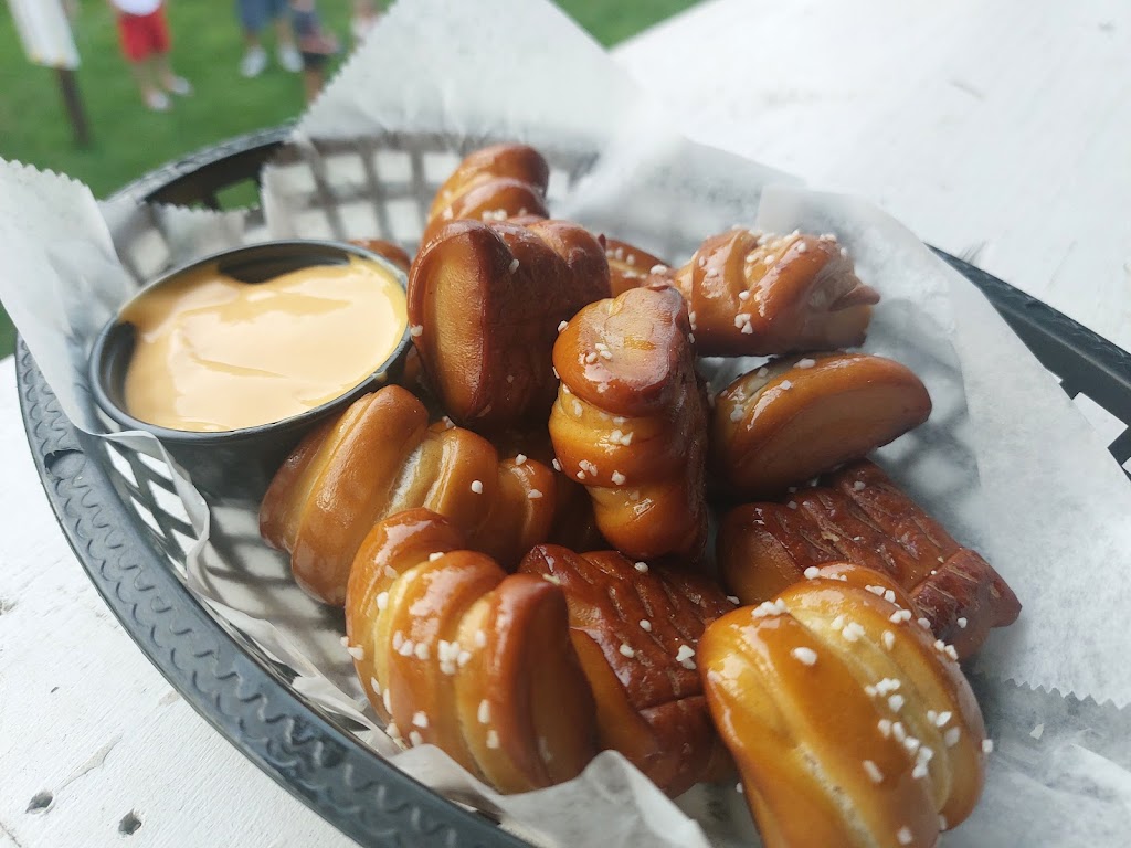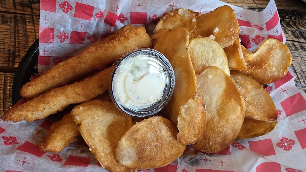 First time here. The smells are amazing. I have to say the burger menu is pretty awesome. I had the sticky burger and Chippers. Homemade potato chips and they are so yummy!! The burger was very tasty and flavorful. Also had the walleye fingers those were really good as well not to thick of breading. Backyard games and patio seating. Only two picnic tables and stools along the other side of the deck.