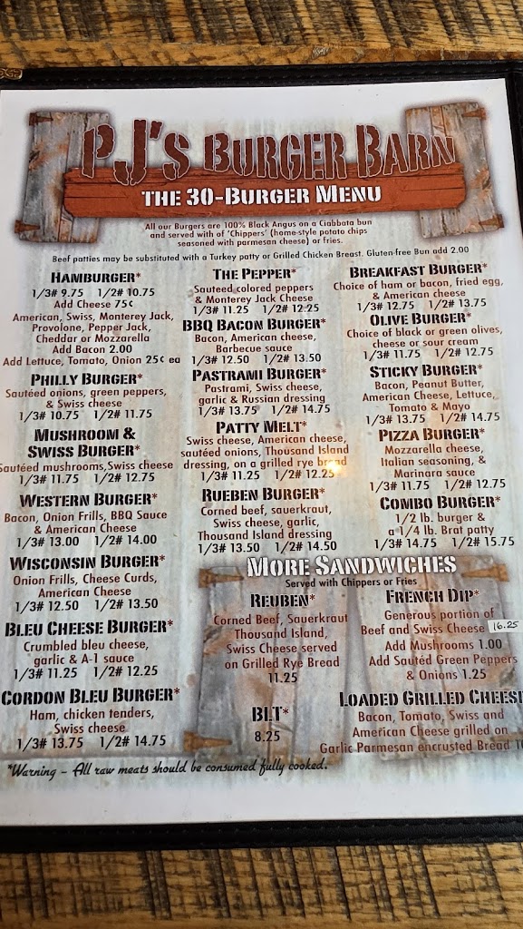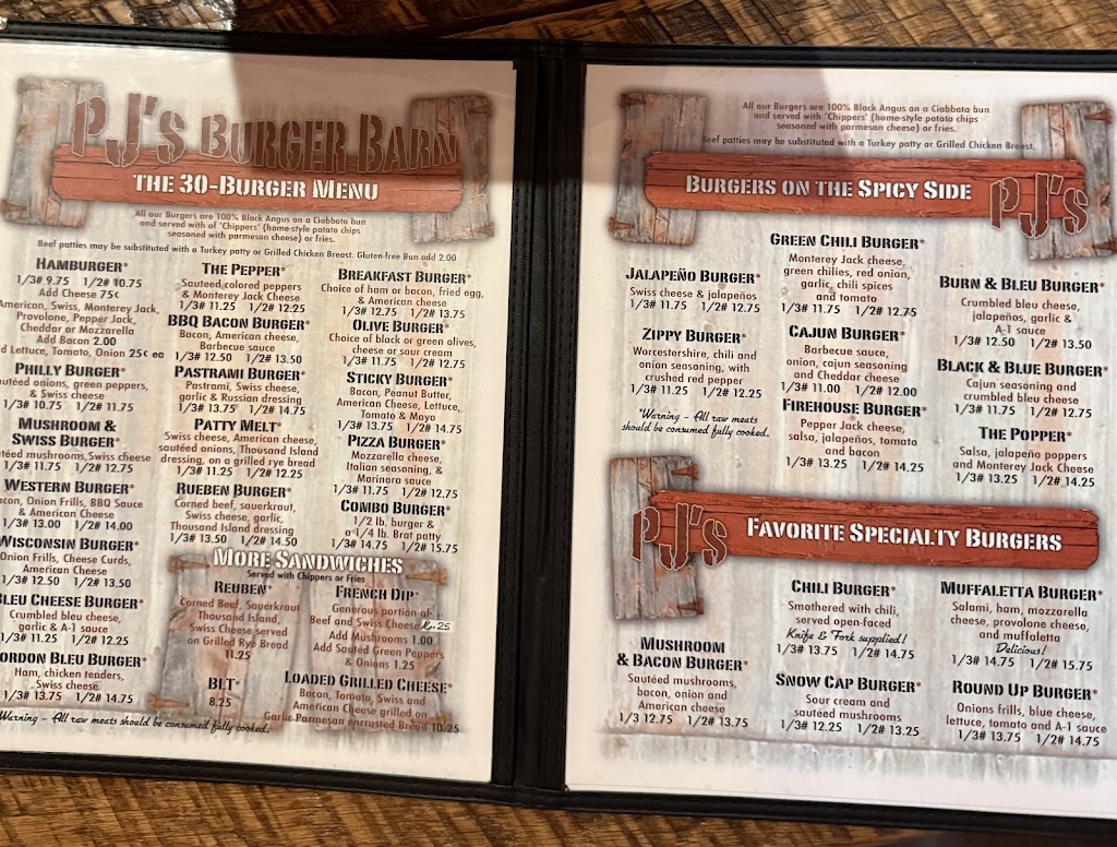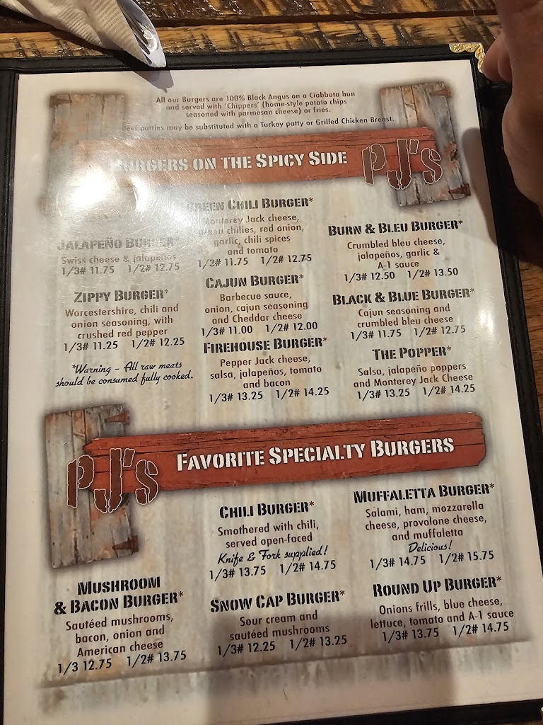 After being told of a two hour wait at a nearby pizza place, we decided to try PJ'S Burger Barn, and it was absolutely excellent! As we pulled into the lot, we were hit immediately with the amazing aroma of grilled burgers. We were greeted by a very friendly hostess, and seated immediately. I had a Western burger, and the rest of the family split a pizza. All were delicious! I don't know why it took so long for us to discover PJ'S. It's going to become a regular stop on our vacations from now on.