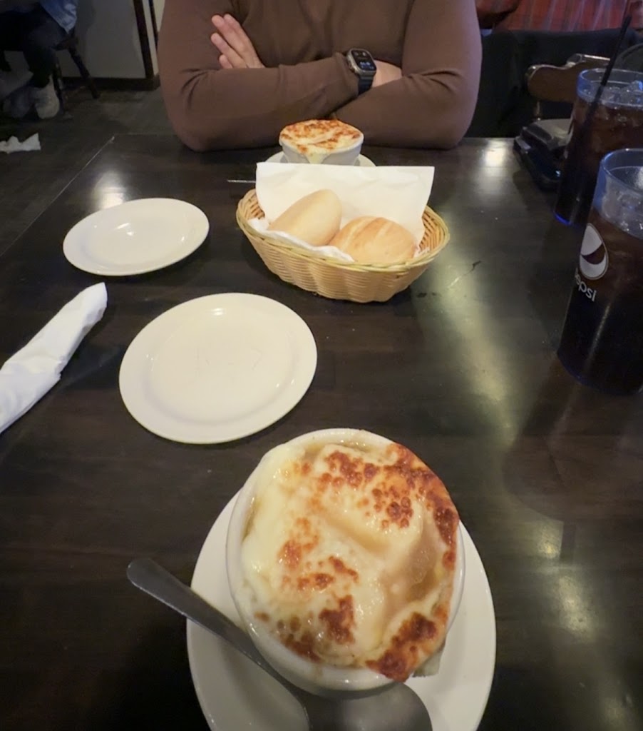 Terrific service and tasty food. I had ribs, chicken. The French onion soup waa outstanding