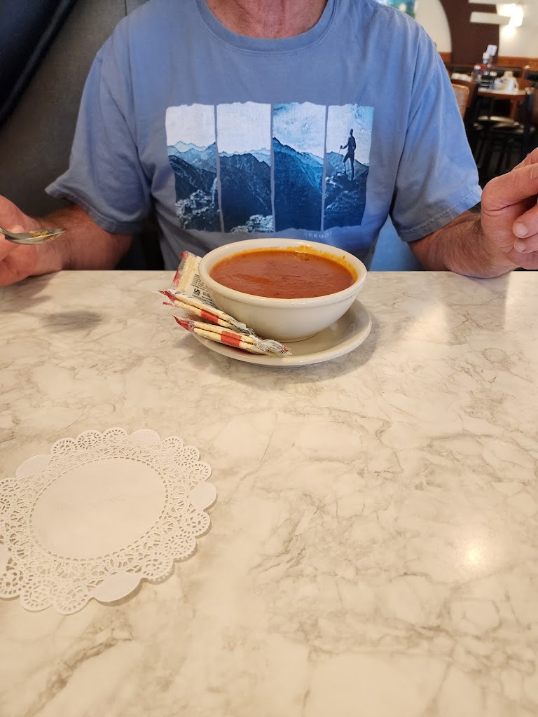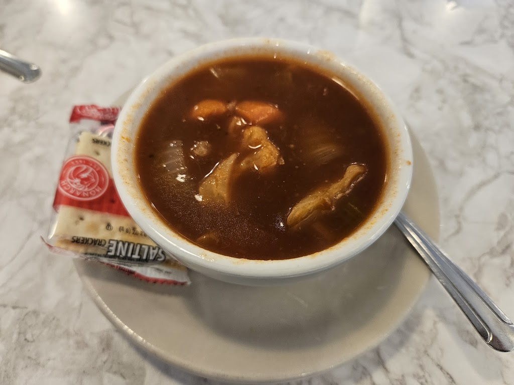 I tried today's special, Chicken Fajitas, and I was pleasantly surprised how delicious it was! My hubby's ham and cheddar omelet, and the veggie soup was perfect as usual.