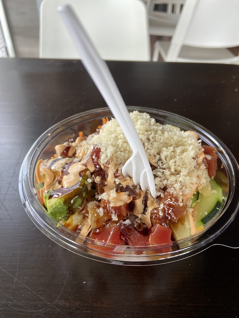 A great place to have poke! They have so many options and a lot more variety than other poke places, and their prices are very reasonable and much cheaper than other poke places. Portions are big and the fish is fresh, all of the options they have taste great! The owners are very pleasant and sweet, and they give you big spoonfuls for your bowl. The smoothies are nice too.
