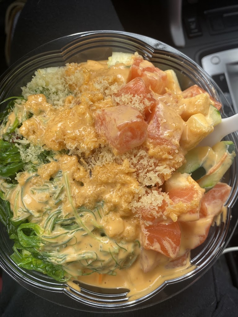 You can even skip rice and get mix greens (great for keto). I went with the spicy salmon and poke salmon and the flavor was great. All the toppings were fresh and well balanced.