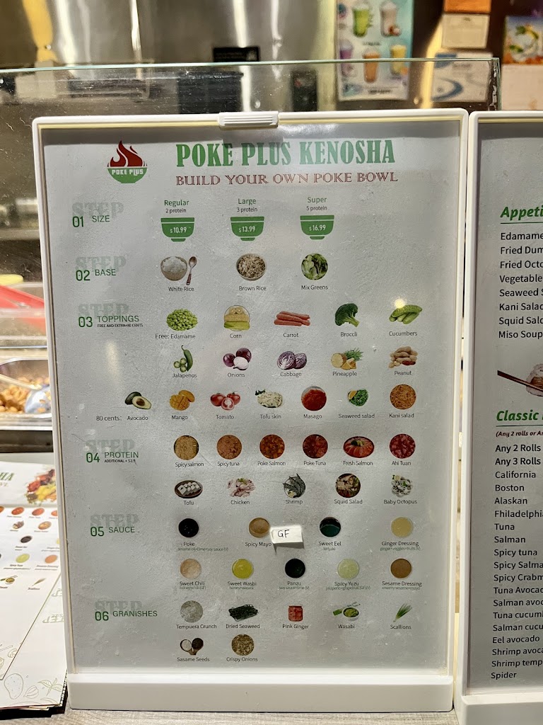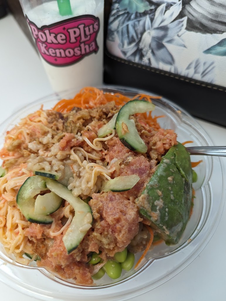 I like the non-chain-coporate vibes of the poke place, right off the freeway in Kenosha. It does feel more like a Chinese fast food restaurant inside, possibly because the owners are Chinese.
