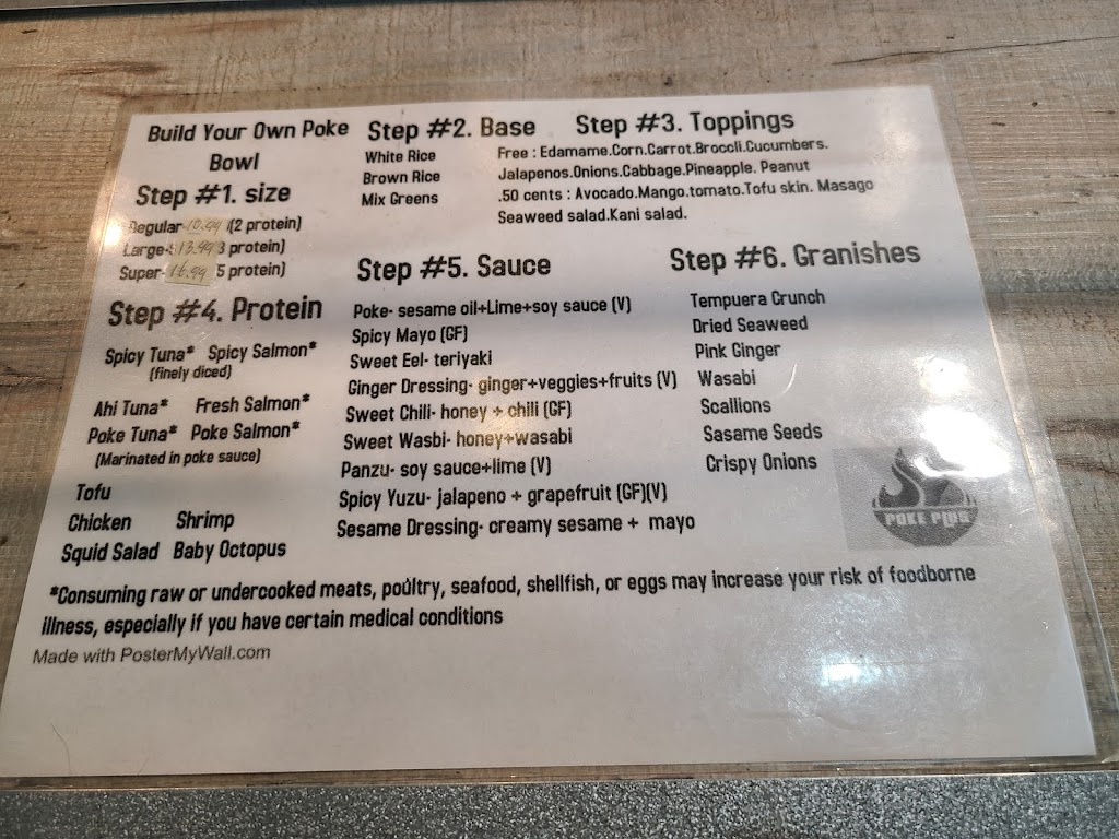 Poke bowls are customizable, like a subway sandwich, with everything in plain sight. Just point and pick.