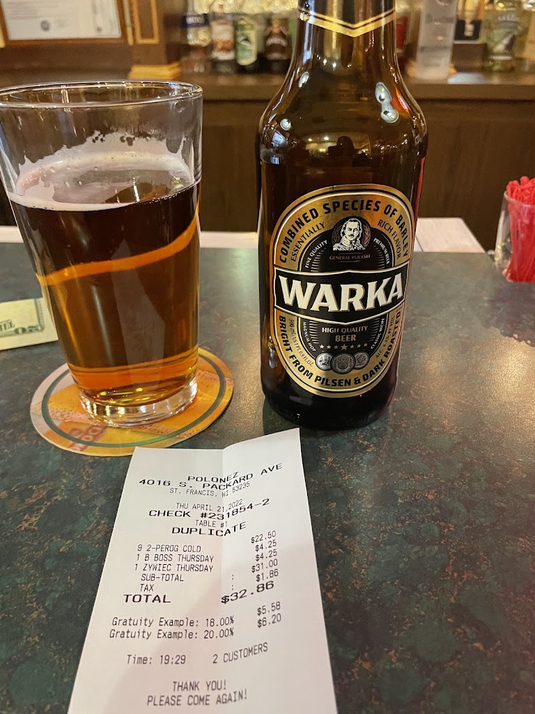 Oh, they have a great selection of Polish beers, I had a Ε»ywiec, husband had a Polish nail, not only was it delicious, it was STRONG.