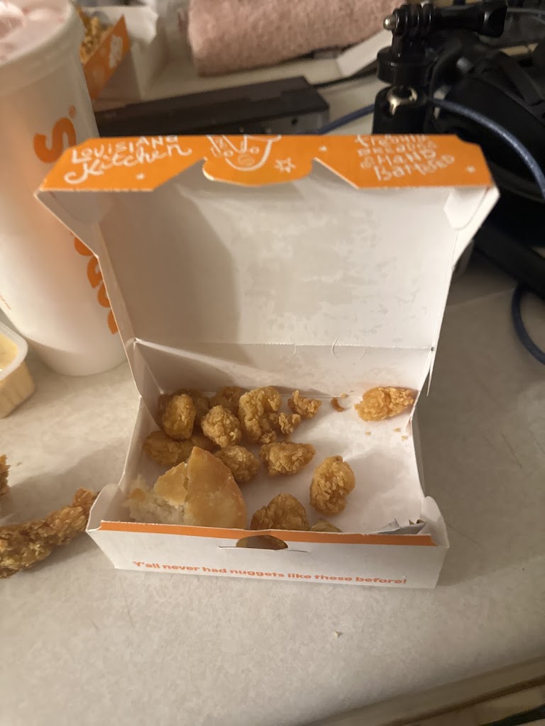 After we got our food, it was cold and we could tell the food was siting for awhile. Looking back now, they had random chicken and sides just up on the back counter. So I’m think they just decided to stop cooking at 10, prep some random food for later that night. Then gave it out when needed. Because our food came out faster than I’ve had it before and I didn’t really watch them, but I didn’t seem ANYONE cooking. (Boyfriend was in the bathroom, so also didn’t see).