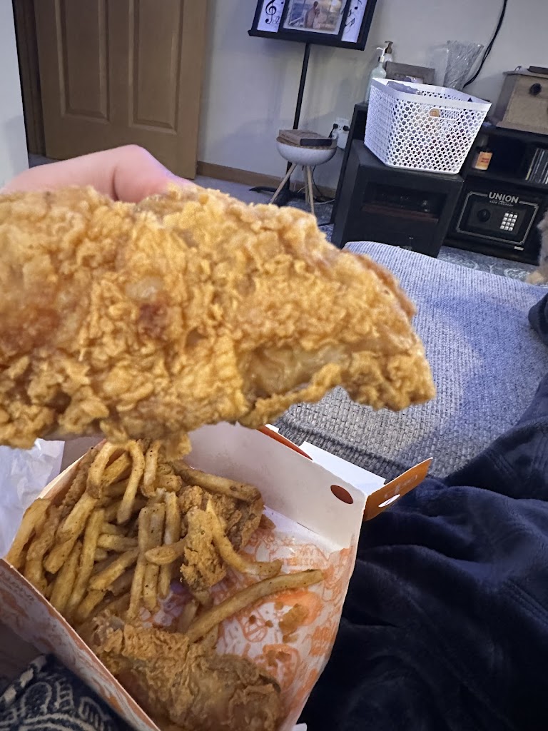Biscuit was delicious, mashed potatoes were good, fries were cold and tasted freeze burnt, the chicken straight up tasted like Sanimax smog. I will never order from here again. I seriously doubt this place ever changes their fryer oil.