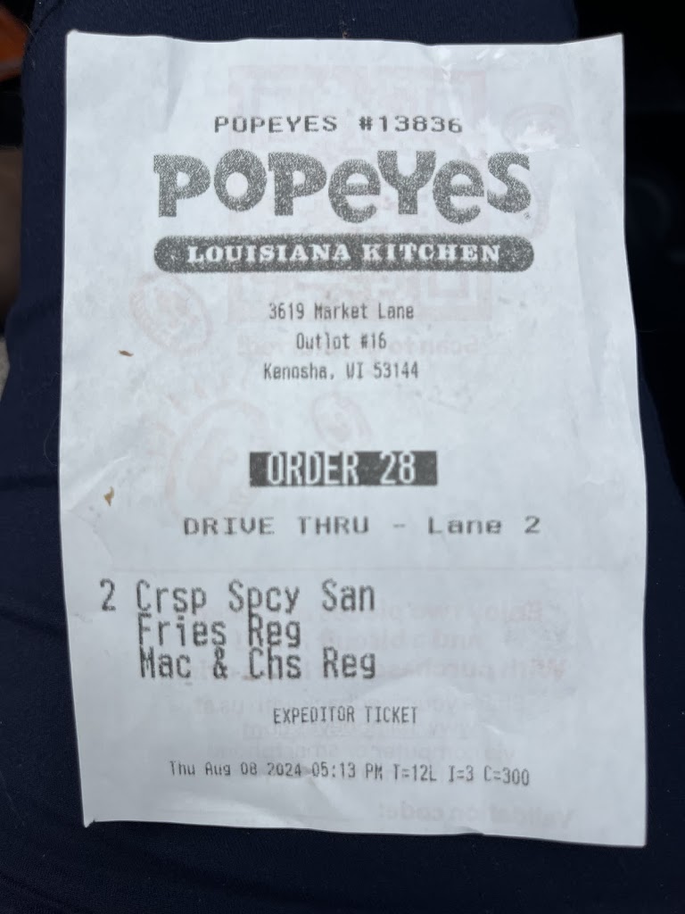 The best Popeyes ever always fast and fresh! Order ready even before I make the payment, If I drive near by Kenosha, I always stoped by :) it’s a must; I live in Illinois the ones from Illinois specially the one from my town not impressed, mehhh! But this one 😍🥰 is fire 🔥