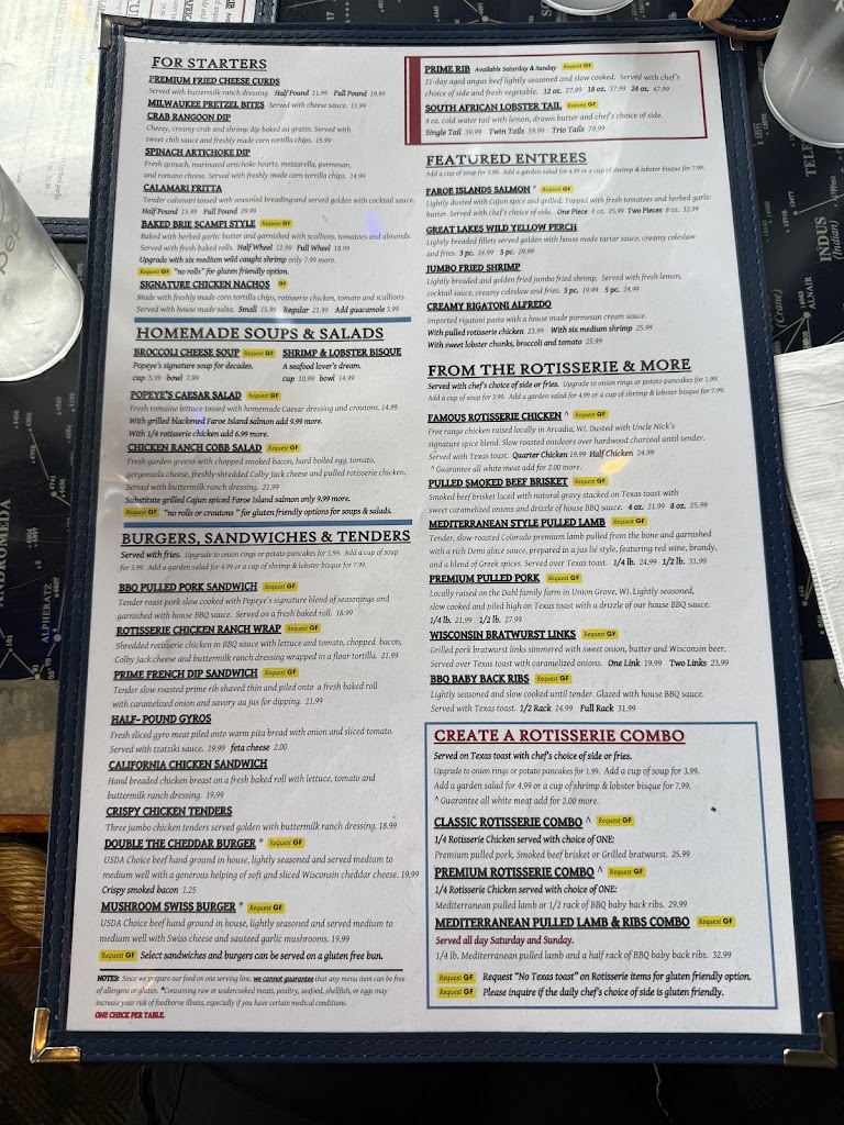 As a family owned and operated business, Popeye's on Lake Geneva went from a small 60 seat pub in 1972 to a full service restaurant with a seating capacity of 600 plus. Popeye's is known for their outdoor rotisserie which features roasted meats cooked over hardwood charcoal. Many would say that their claim to fame is their homemade soups! With great food, friendly service and a beautiful view of Lake Geneva, Popeye's on Lake Geneva is a popular stop for locals and visitors.